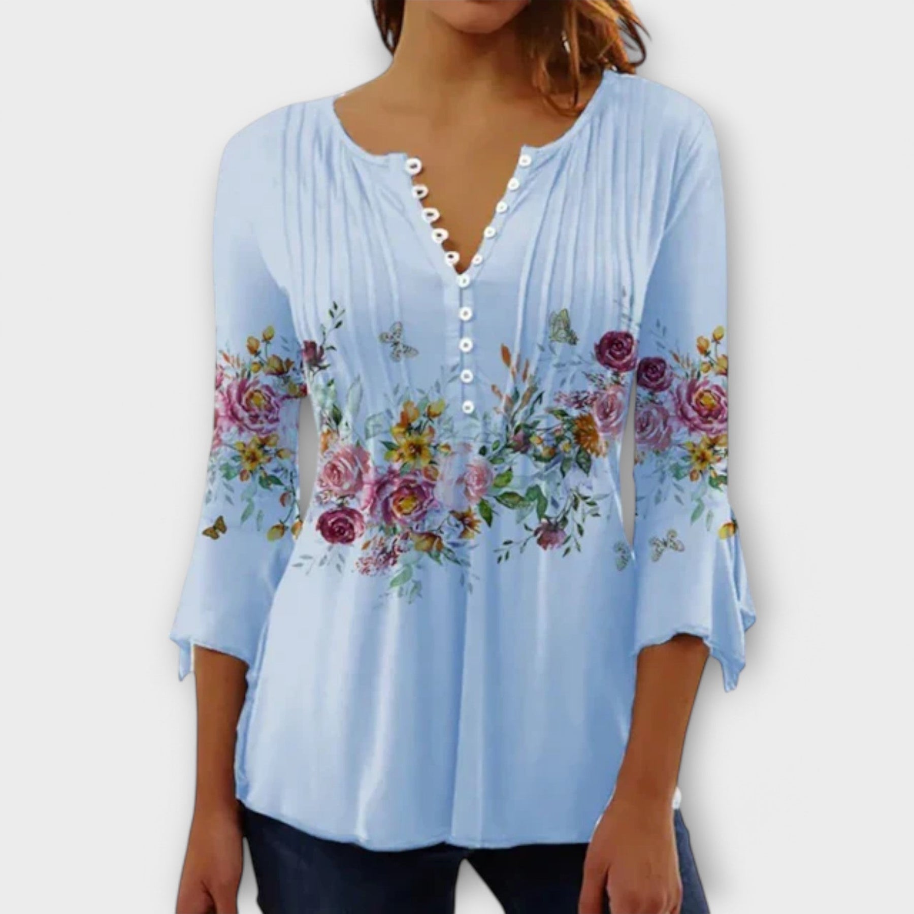 Juliane – Bluse med V-hals og ærmer