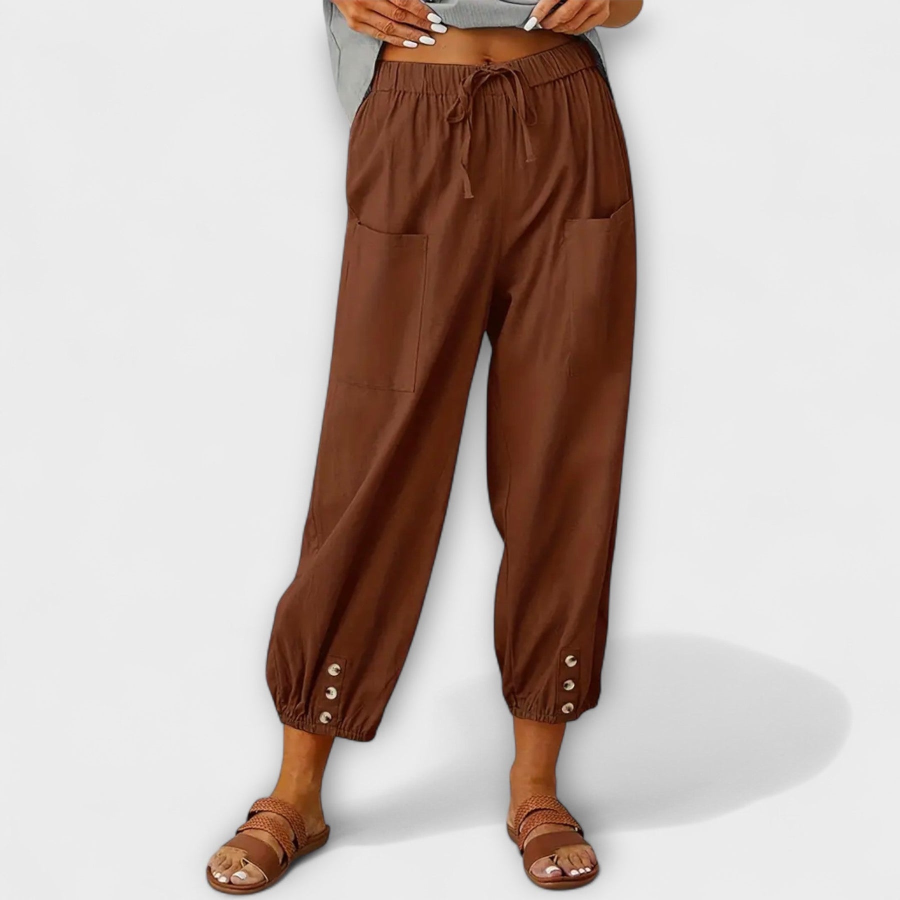 Opdag dine nye yndlingsbukser til de varme måneder: Kiara Harem Bukserne! De kombinerer stil og komfort og følger dig perfekt gennem afslappede og fashionable forårsoutfits.